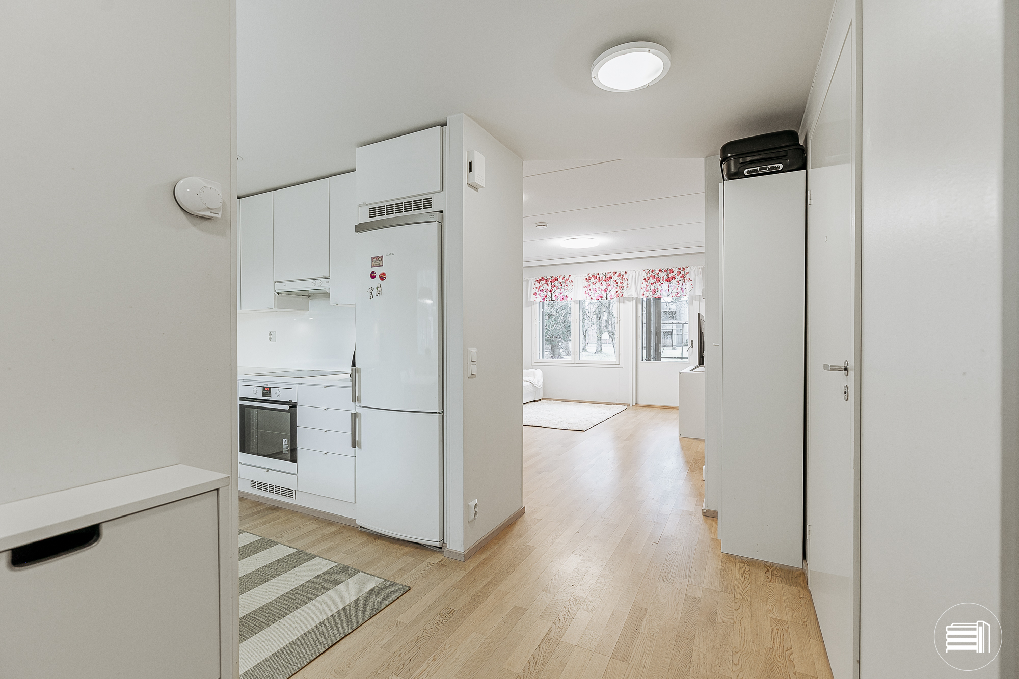 • seinät maalattu, lattiassa vaalea laminaatti