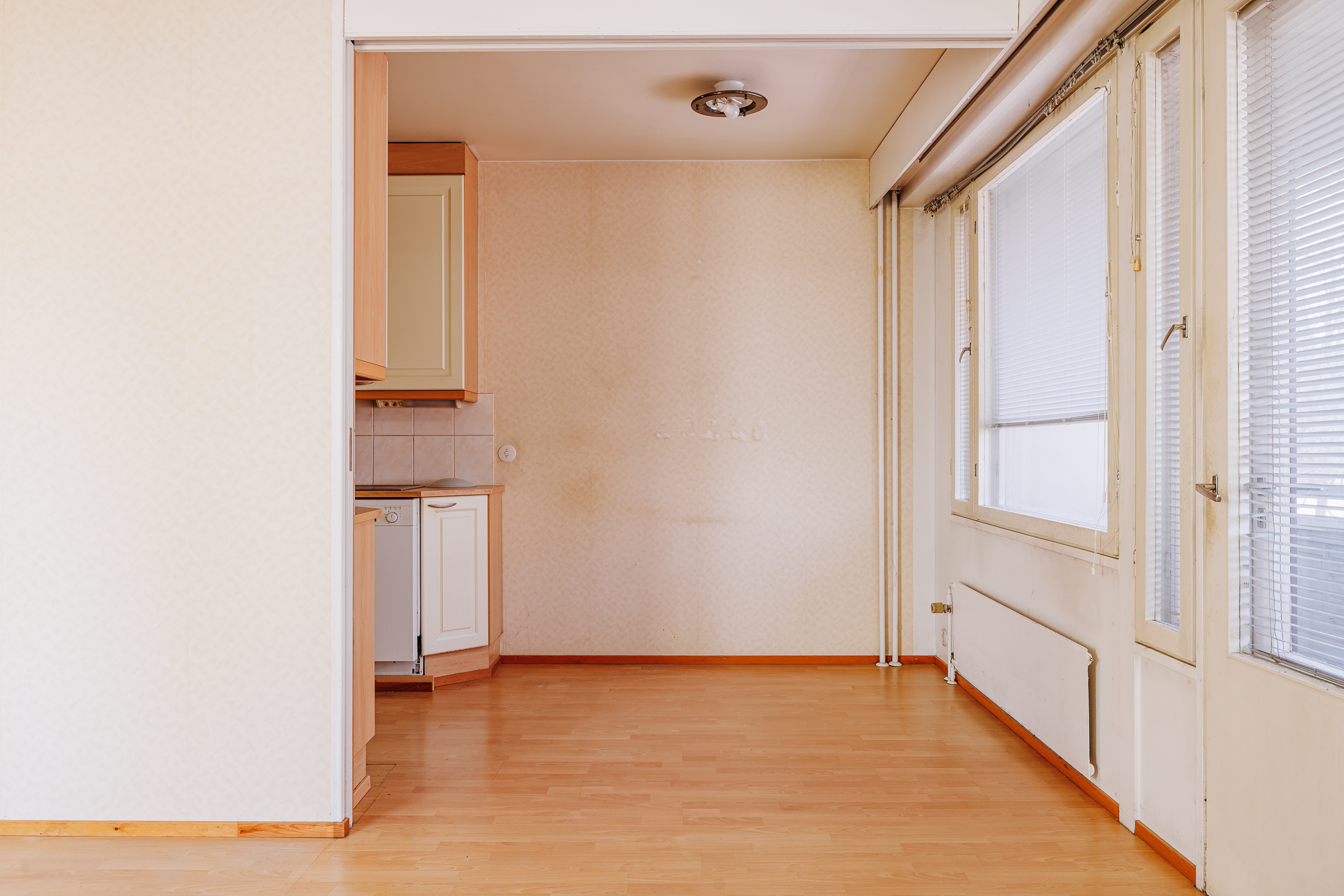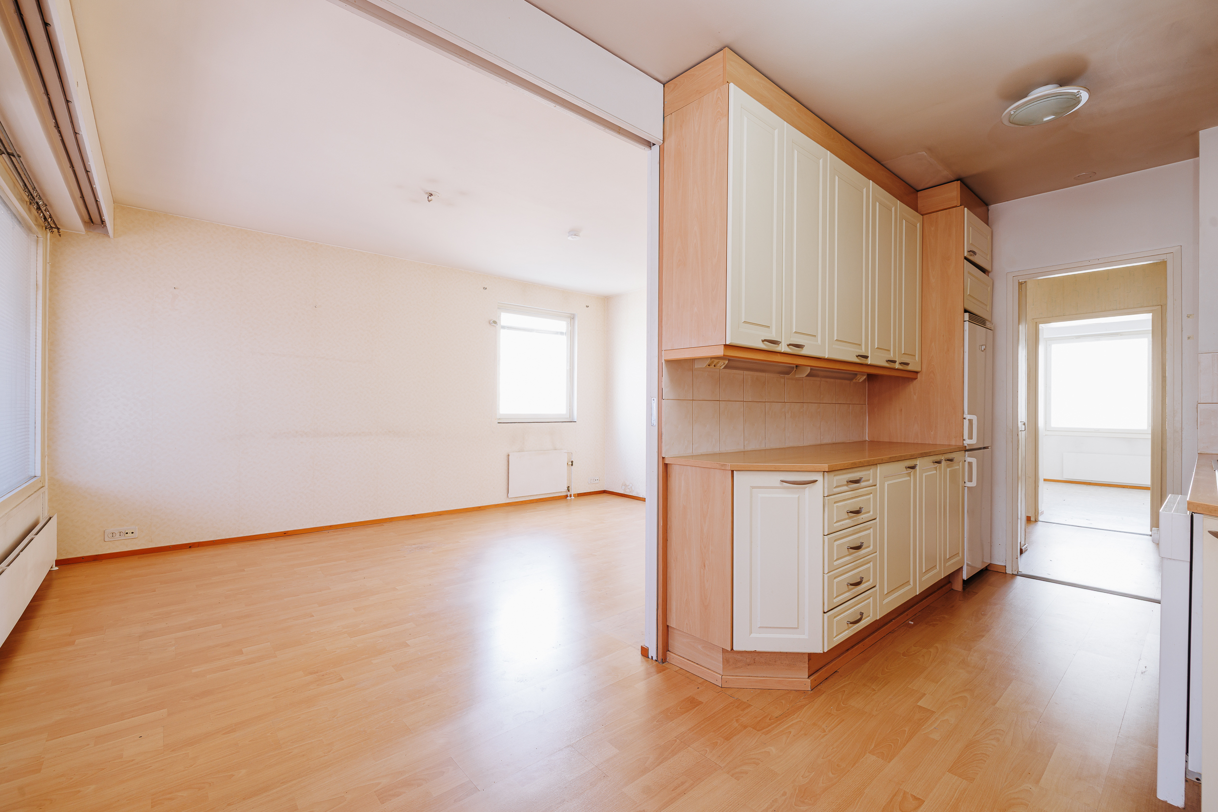 Kodikas asunto tarjoaa käytännöllisen pohjaratkaisun, johon kuuluu kaksi makuuhuonetta, olohuone, erillinen ruokailutila sekä keittiö. Olohuoneen päätyikkuna avartaa tilaa ja tuo asuntoon ilmavuutta.