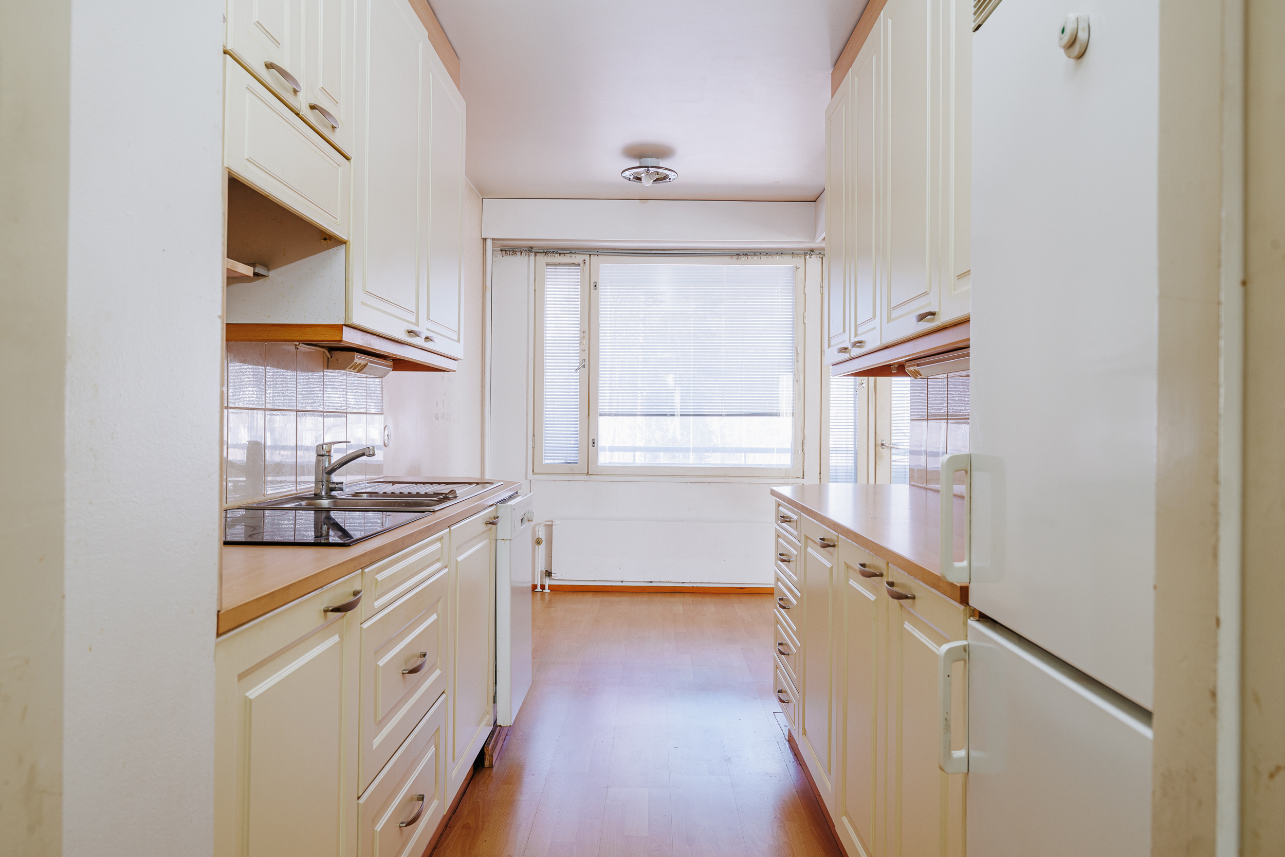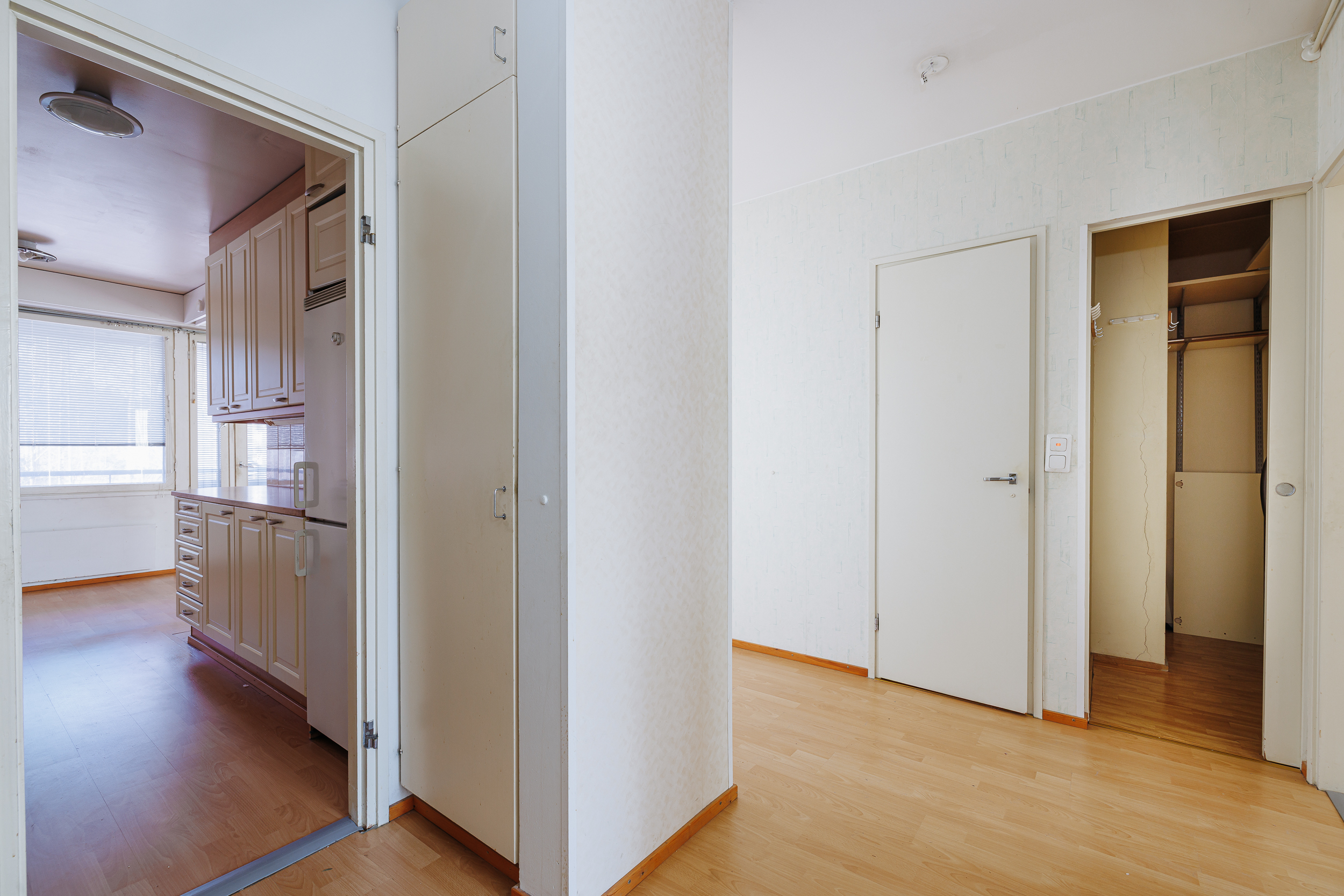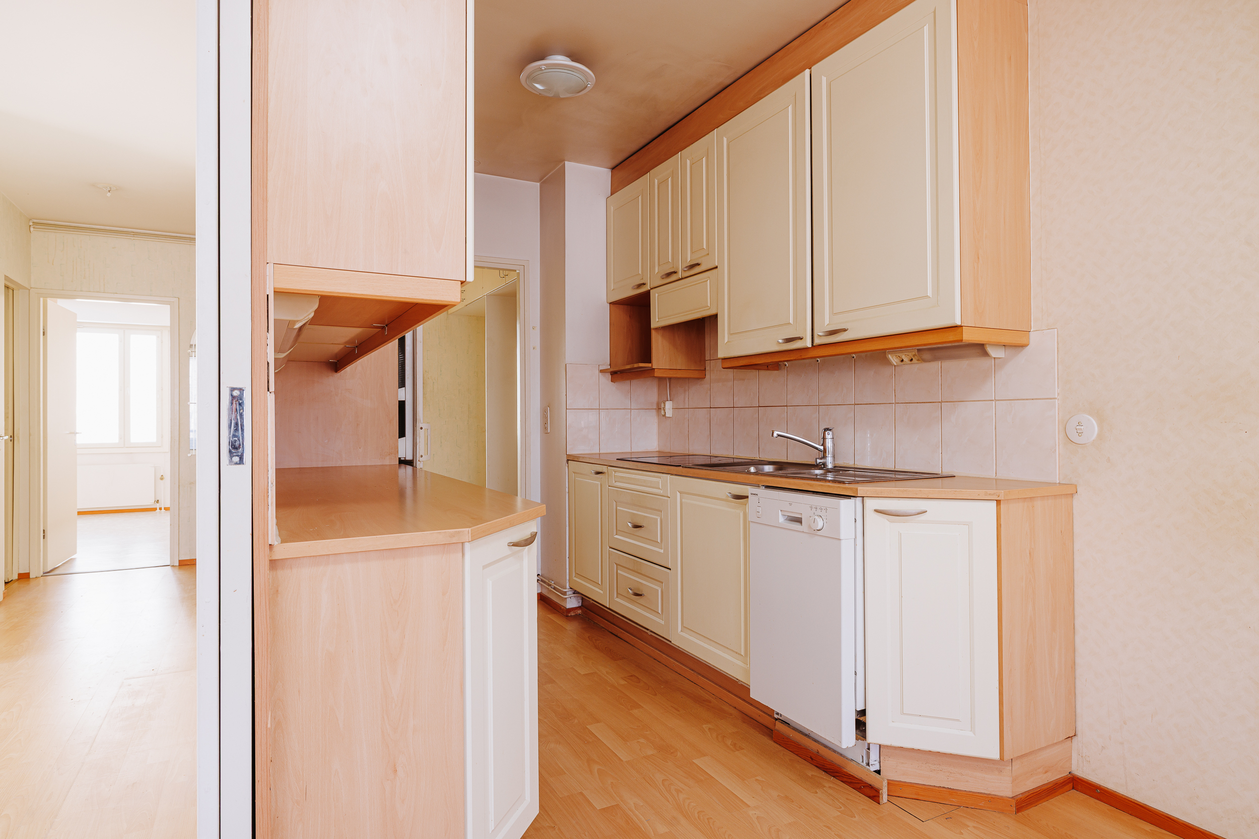 Keittiö ja pesuhuone on uusittu vuosien varrella, mikä lisää asumismukavuutta. Keittiössä on vaaleat peiliovelliset kaapistot, keraaminen liesitaso sekä astianpesukone. Kokonaan kaakeloidussa pesuhuoneessa on suihku, suihkuseinä ja liitäntä pesukoneelle.