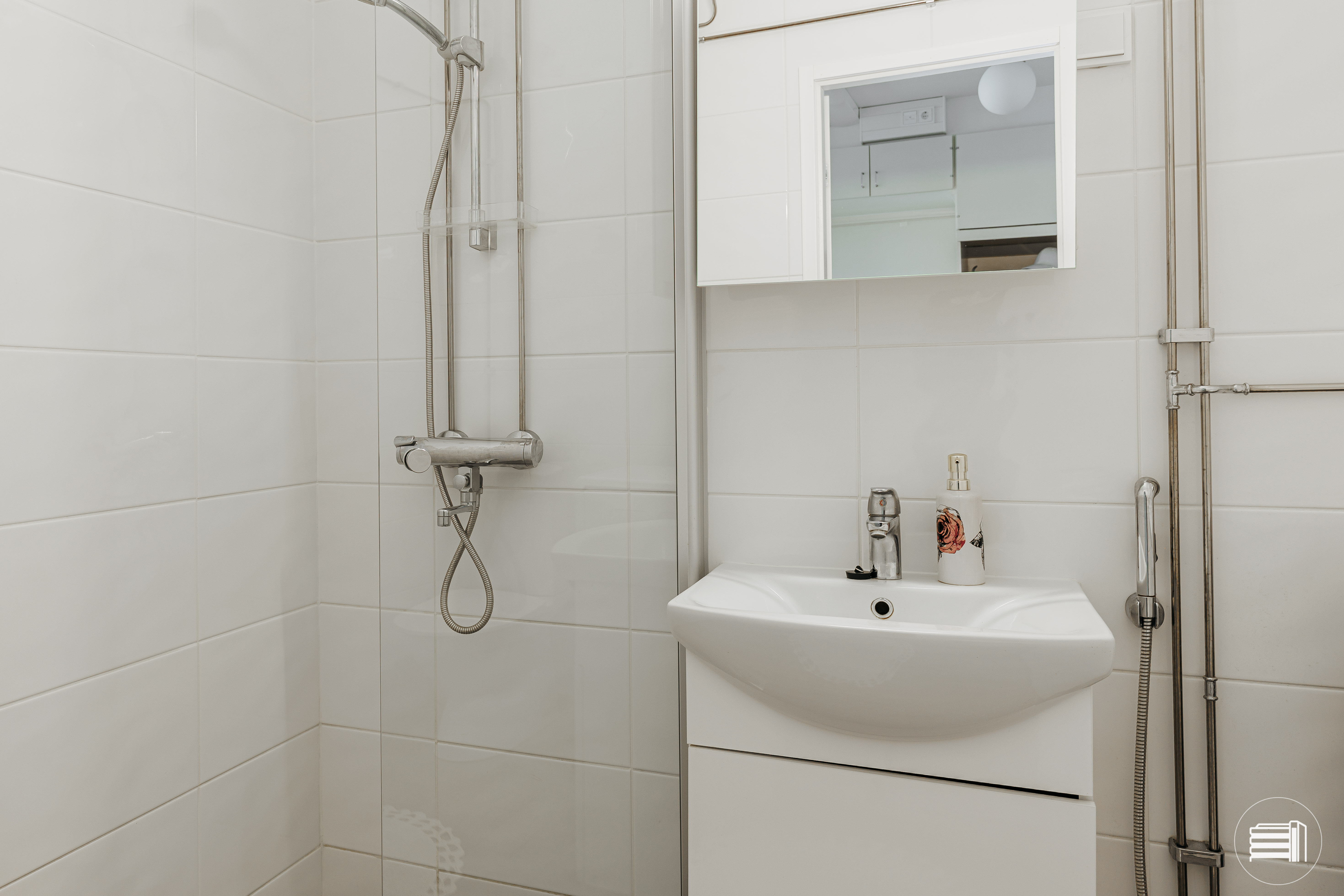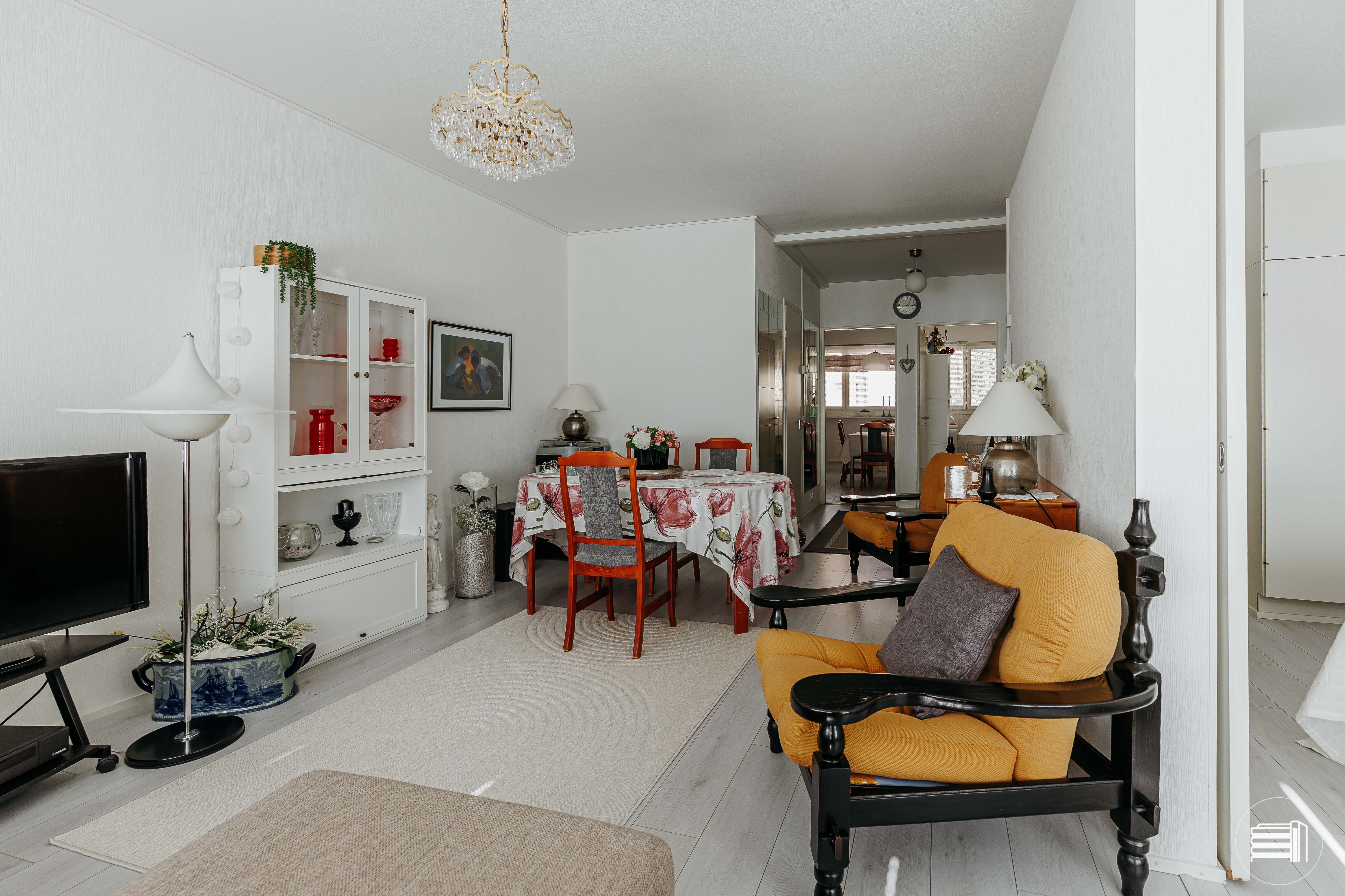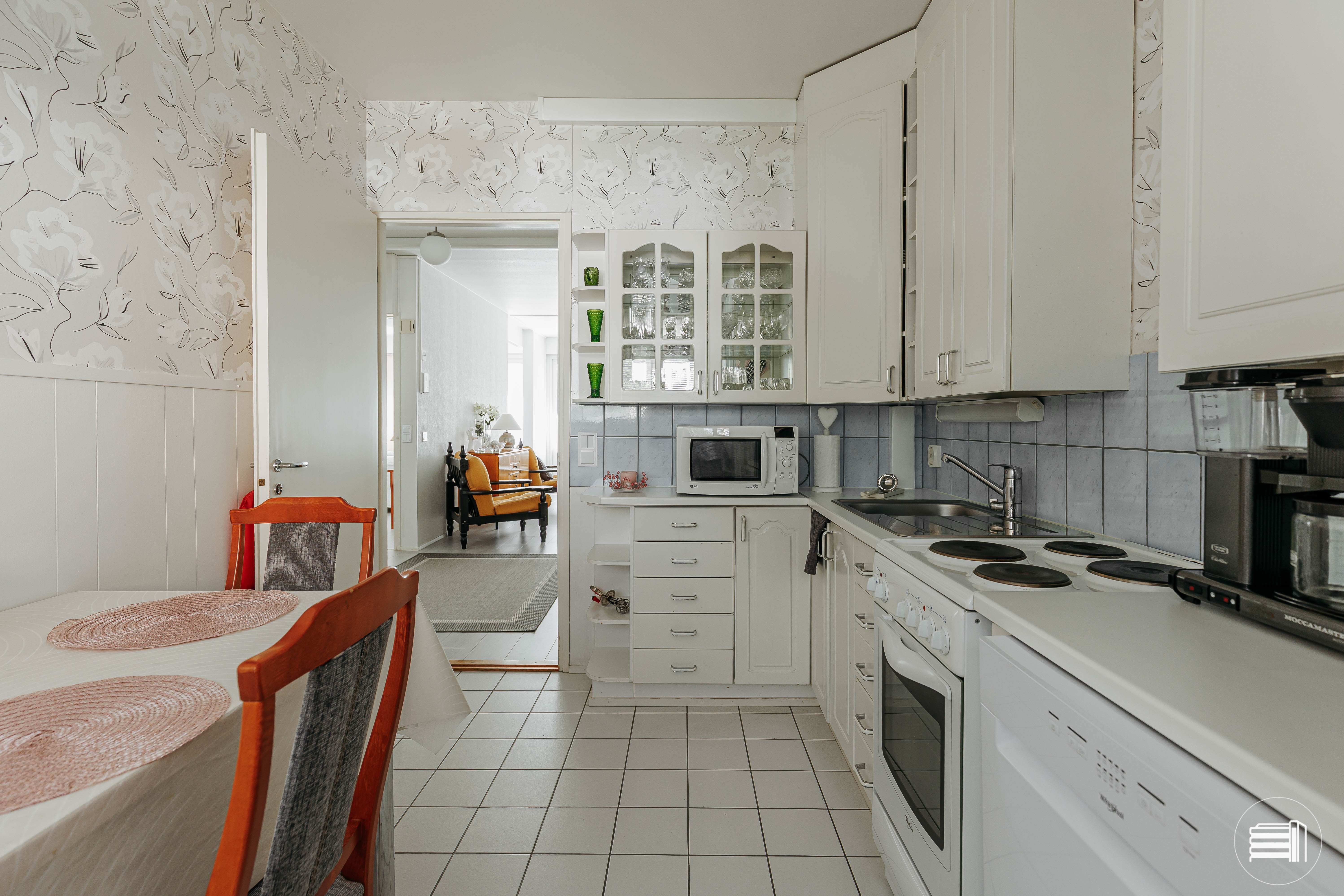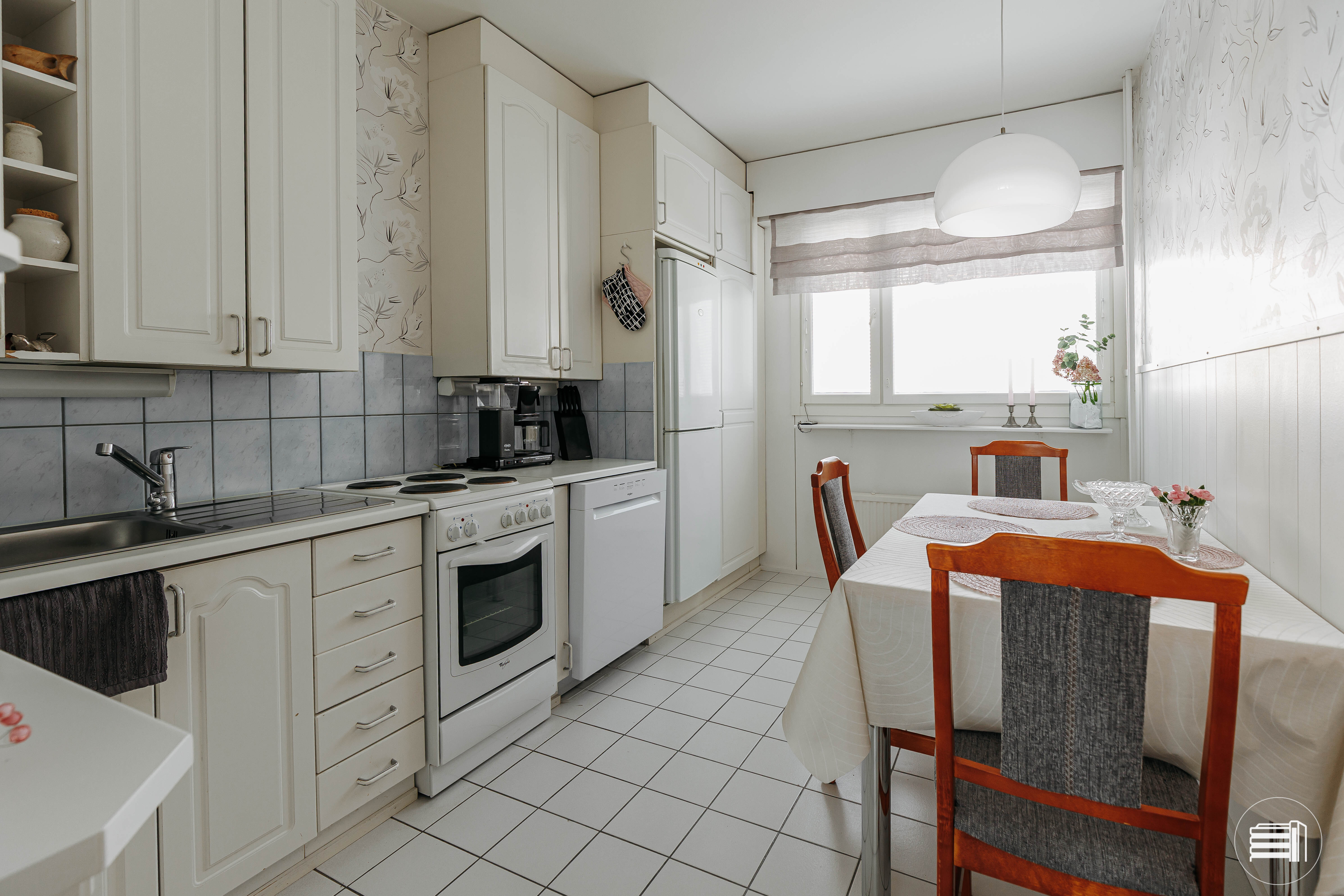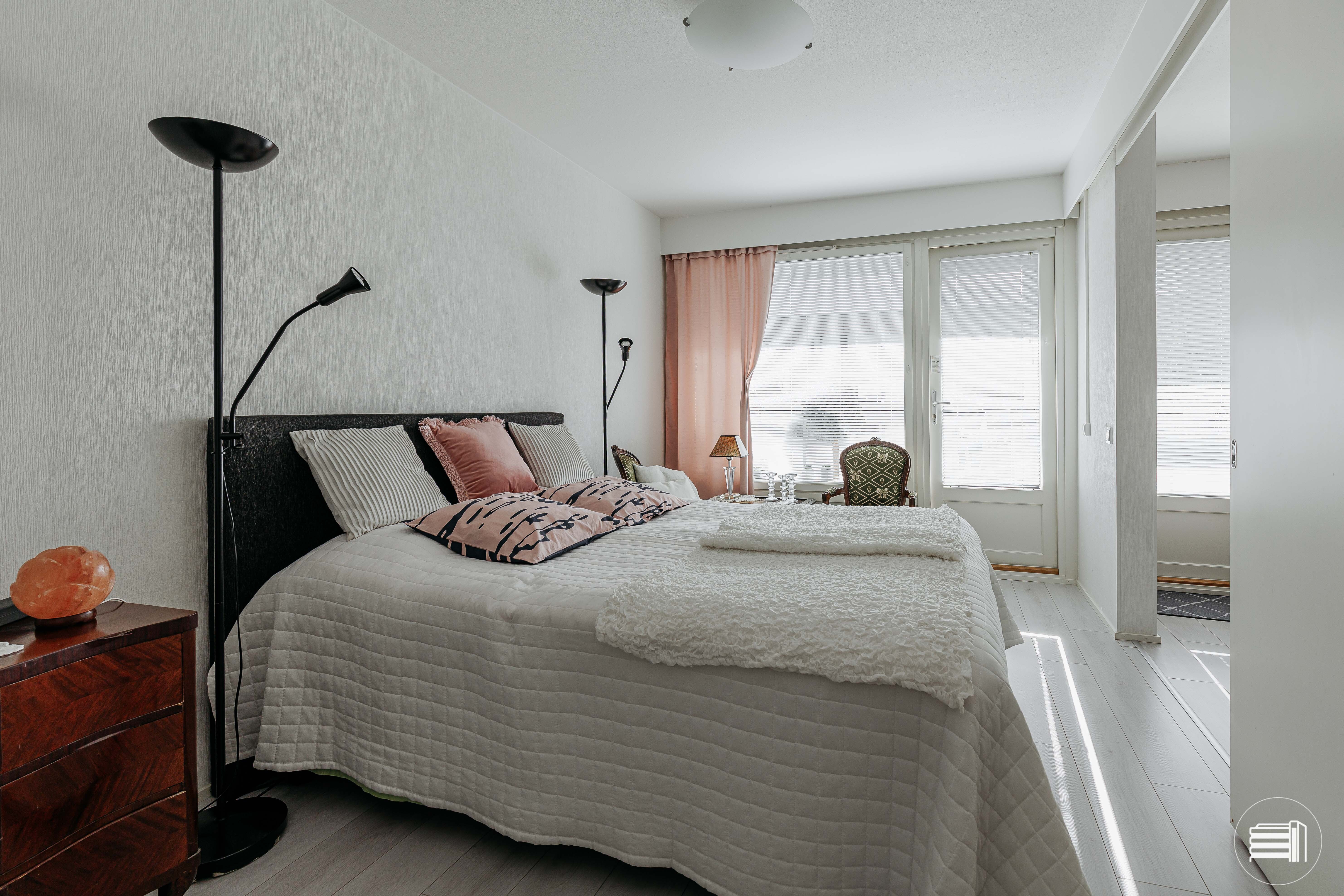 2.kerroksen valoisa ja hyväkuntoinen, läpitalon kolmio Upasta. Vaaleat sisustusmateriaalit luovat rauhallisen ja avaran tunnelman. Tämän huoneiston erikoisuutena on kaksi erillistä lasitettua parveketta, joissa voit viettää rentouttavia hetkiä. V.-23 remontoidussa pesuhuoneessa on myös hillityt sävyt, sieltä löytyy myös allaskaapisto ja kääntyvä suihkuseinä ja pesukoneelle hyvin tilaa.