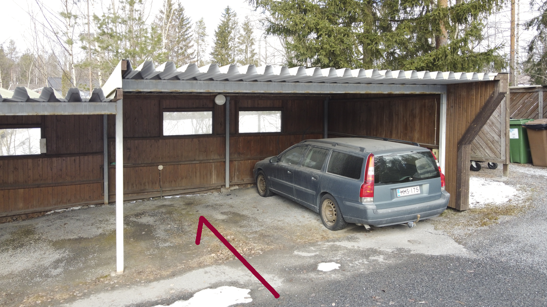 | (Taloyhtiön) Rakennukseen tehdyt korjaukset ja remontit | V. 2009: kattoremontti. V 2012: parvekeaitojen maalaus. V.2014: B6 asunnon vesivahinkokorjaus, sammaleen poisto ulkoseinistä. V.2015: kuivakaivojen tarkastus ja vesieristeet. V.2017: mursketta autokatoksen pohjaan. V.2018: varaston sokkelin korjaus ja hulevesien ohjaus, patolevyjen laitto. V. 2023: julkisivun puupintojen maalaus. V.2025: ikkunat, ulko-ovet ja lukostot uusittu. |