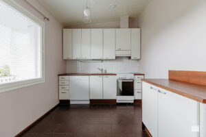 Valoisassa kodissa on toimiva pohjaratkaisu ja vino sisäkatto, joiden ansiosta koti tuntuu avaralta ja neliöitään suuremmalta. Keittiö on kulmittain olohuoneeseen nähden, yhdistäen kodikkaasti avokeittiön ja erilliskeittiön parhaat puolet. Keittiön käytännölliset kaappi- ja laskutilat sekä vaatehuone tekevät arjesta sujuvaa. Kodin helppohoitoisuutta lisäävät laatat keittiön ja eteisen lattioissa.
