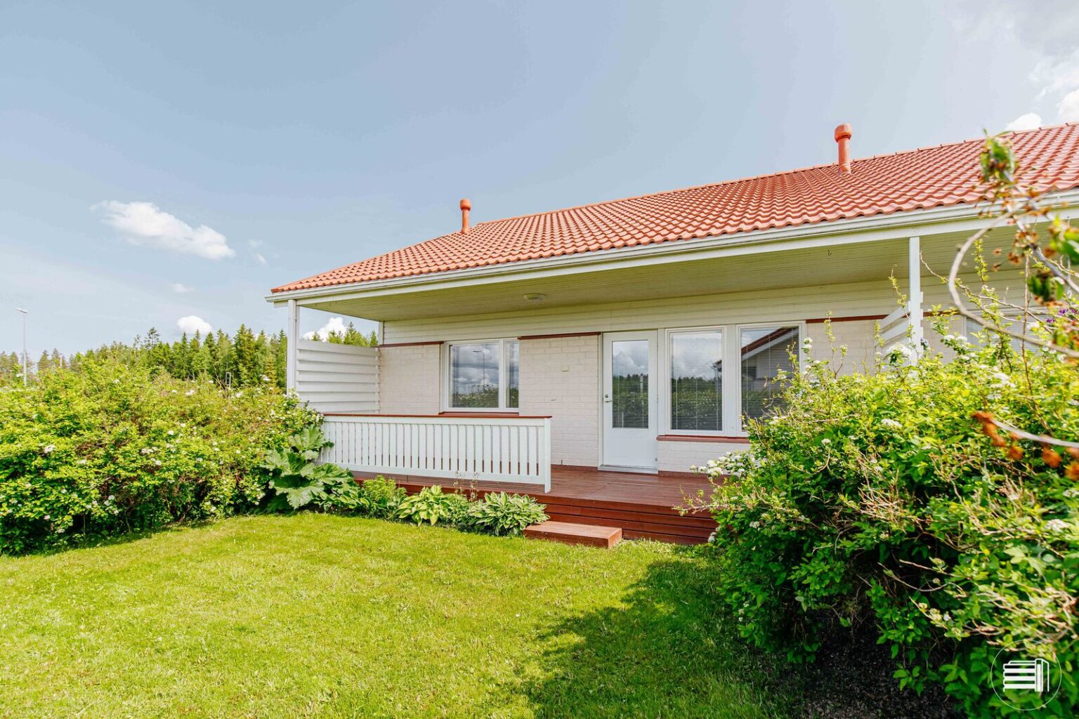 Oleskelutiloista avautuu maisema länteen ilta-aurinkoon, ja olohuoneesta on kulku koko huoneiston levyiselle katetulle terassille. Talon sijoittelu tekee pihasta suojaisan. Kertunlaakso on haluttu asuinalue, jossa päiväkoti, koulu, monipuoliset liikuntamahdollisuudet ja palvelut ovat lähellä. Laajentuvaan Prisman kauppakeskukseen 2 km. Liikenneyhteydet ovat sujuvat ja itäiselle ohikulkutielle on nopea pääsy.