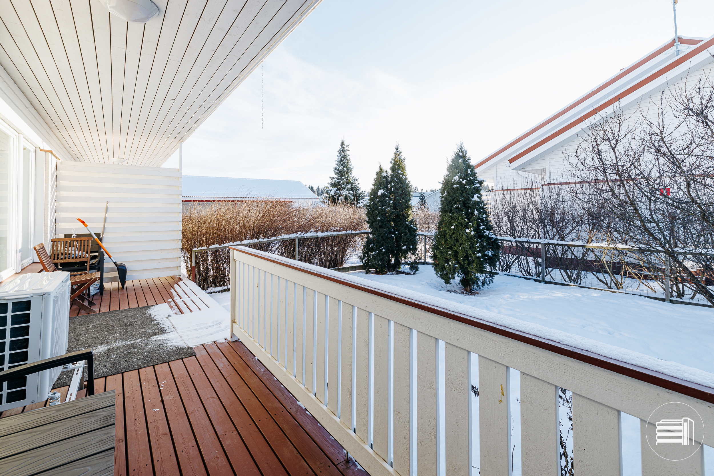 Olohuoneesta on kulku huoneiston levyiselle katetulle terassille, minne paistaa aurinko kauniisti illallakin. Talon sijoittelu tekee pihasta suojaisan. Kertunlaakso on suosittu asuinalue, jossa päiväkoti, koulu, monipuoliset liikunta- ja harrastusmahdollisuudet ja palvelut ovat lähellä. Laajentuvaan Prisman kauppakeskukseen on 2 km. Liikenneyhteydet ovat sujuvat ja itäiselle ohikulkutielle on nopea yhteys.