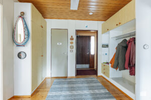 Säilytystilaa löytyy makuuhuoneiden kaapistoista, erillisestä vaatehuoneesta ja varastoista.