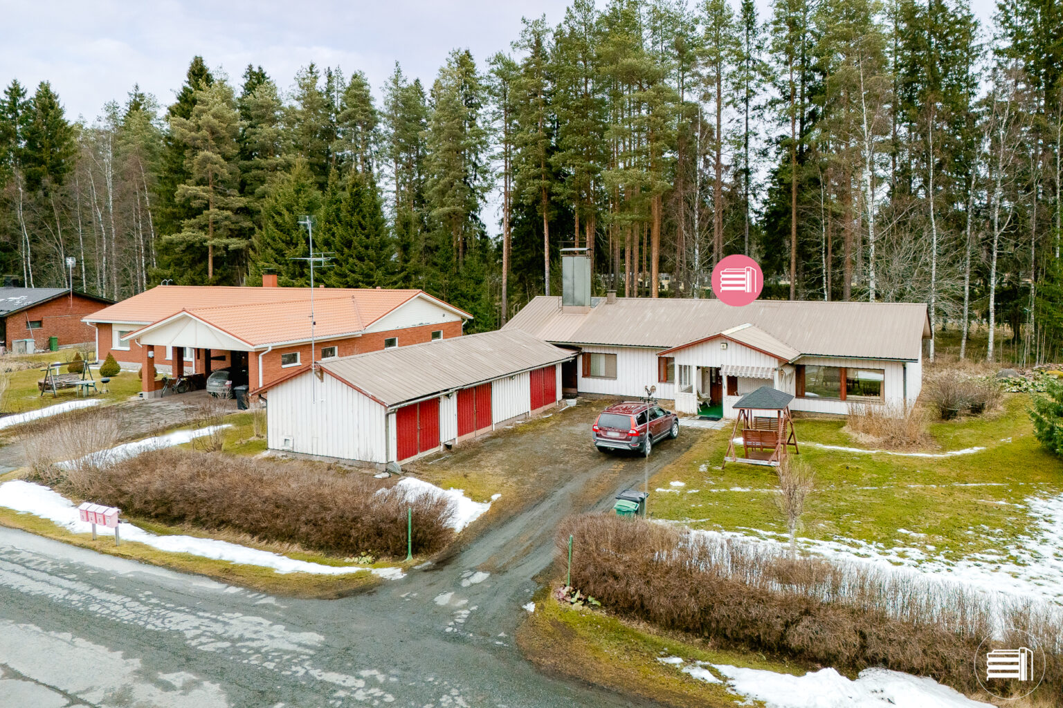 Erillisestä ulkorakennuksesta löytyy varastotilaa, sekä lämmin autotalli.