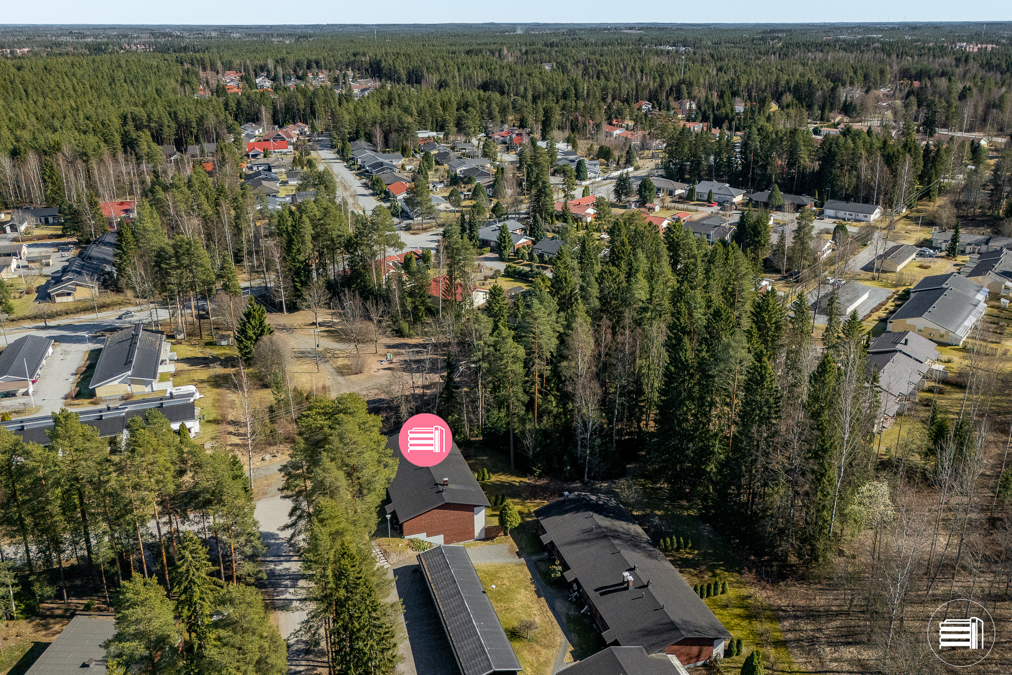 Hyvin hoidettu isojen asuntojen taloyhtiö käsittää 9 asuntoa, joista pienimmät ovat 75-neliöisiä. Myytävän huoneiston tilat sijoittuvat kahteen kerrokseen. Huoneiston sisäänkäynti on suoraan yläkertaan, jossa sijaitsee kaksi makuuhuonetta, olohuone ja keittiö. Keittiöstä on kulku huoneistonlevyiselle parvekkeelle joka avautuu etelän suuntaan. Alakerrassa sijaitsee huoneiston kolmas makuuhuone, takkahuone sekä pesuhuone ja sauna. Takkahuoneesta on kulku ulos, aurinkoiselle takaterassille.
