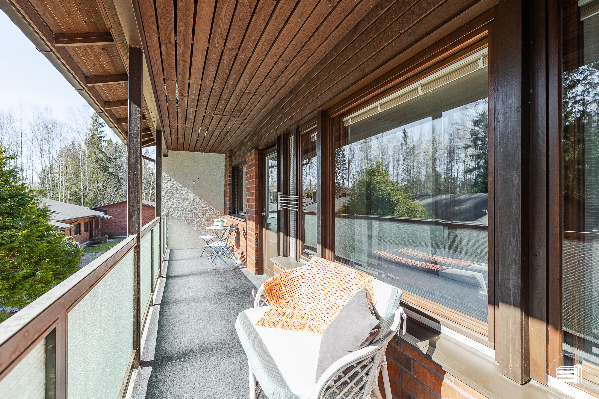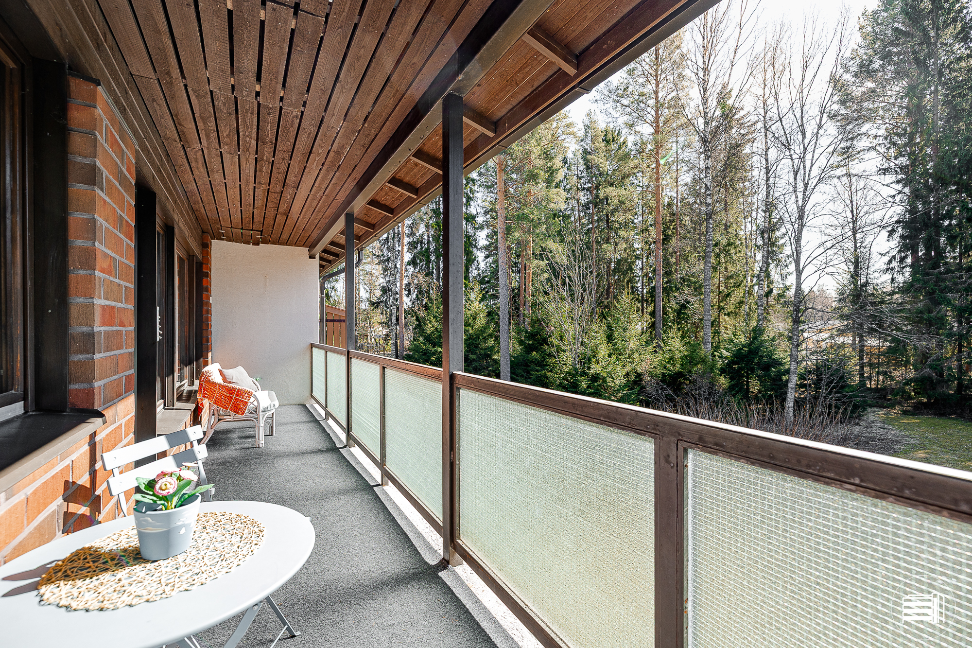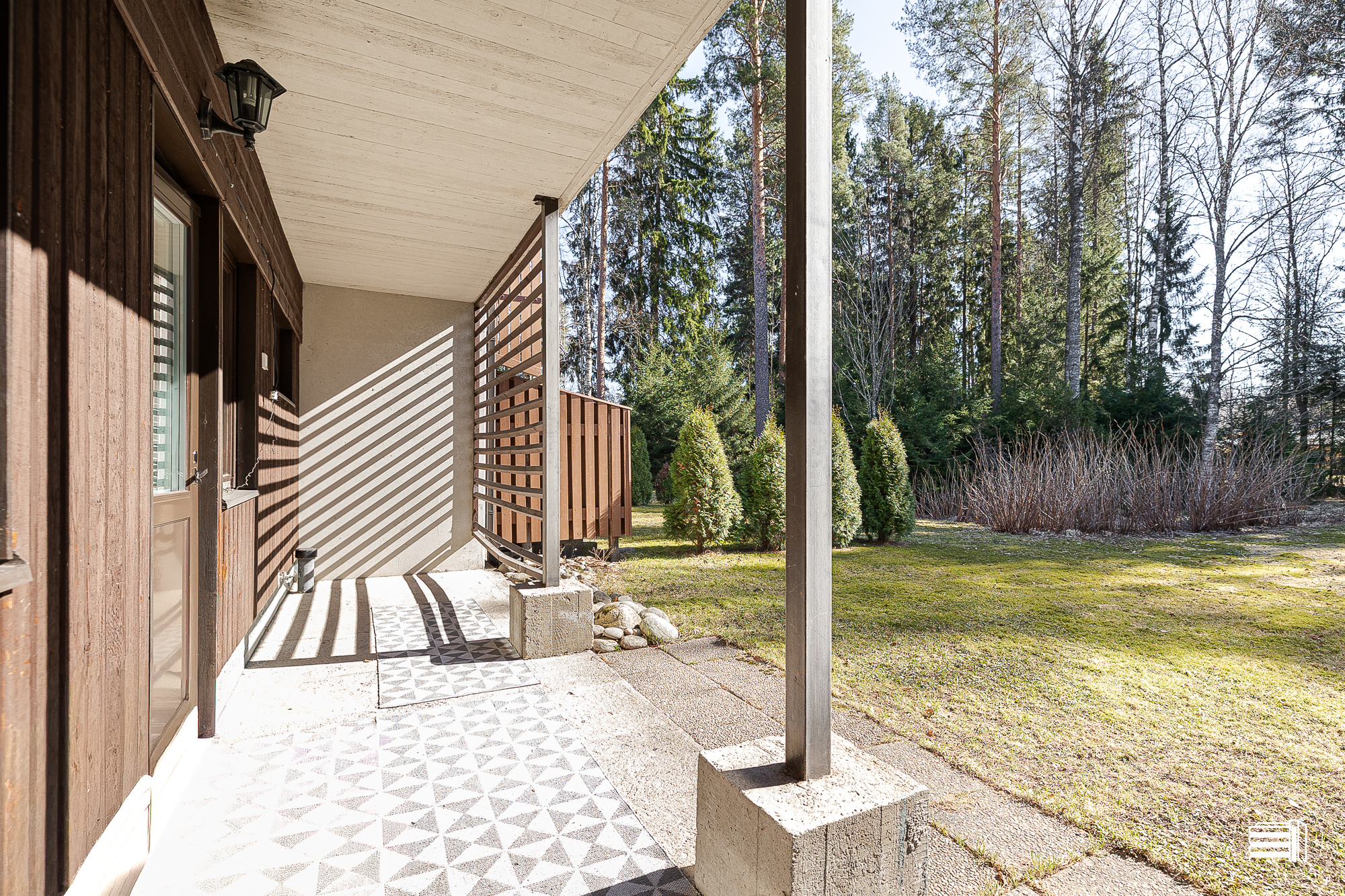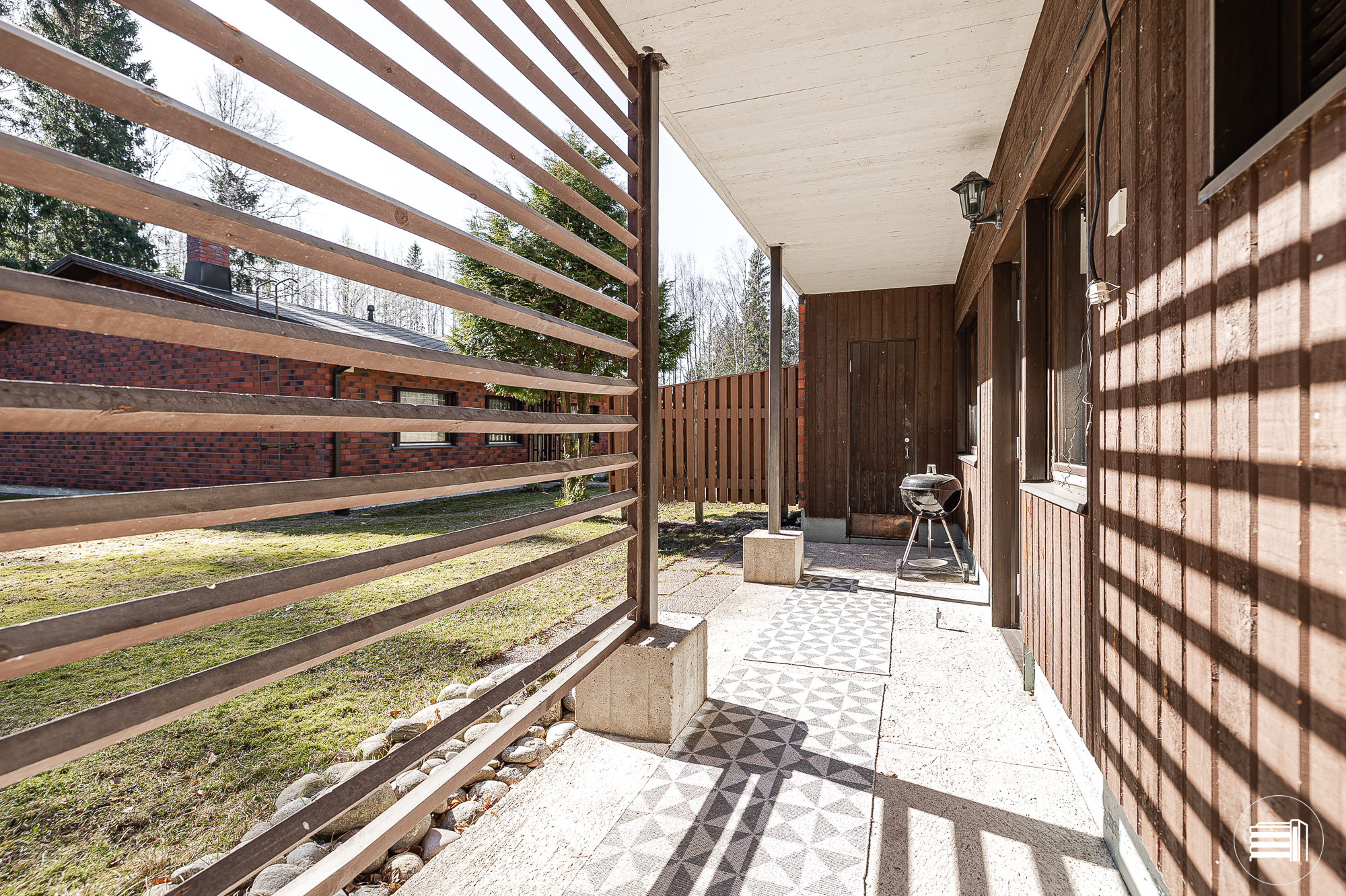 Takkahuoneesta kulku takaterassille