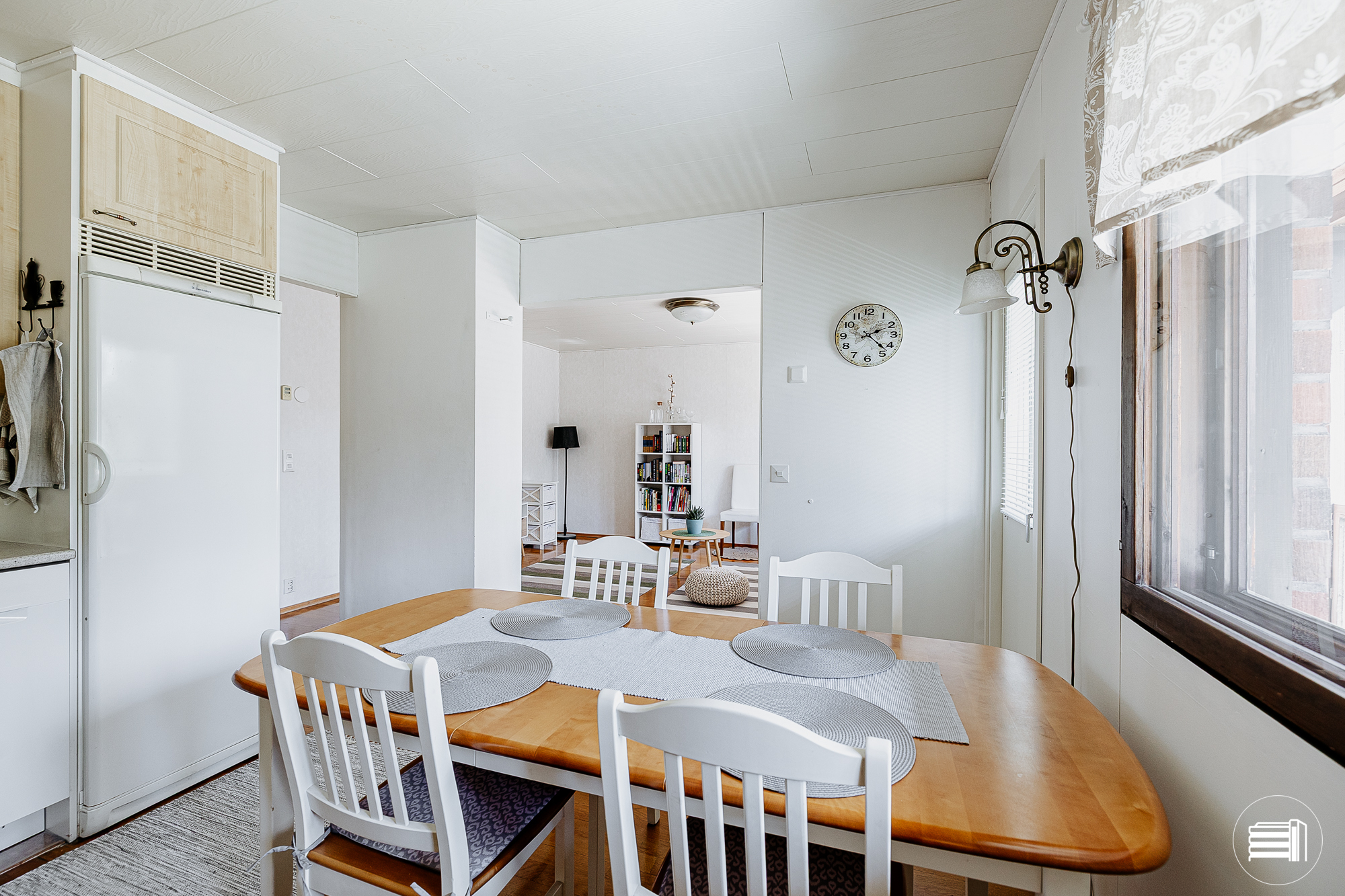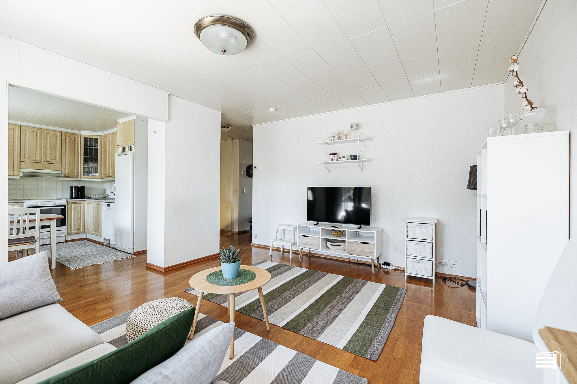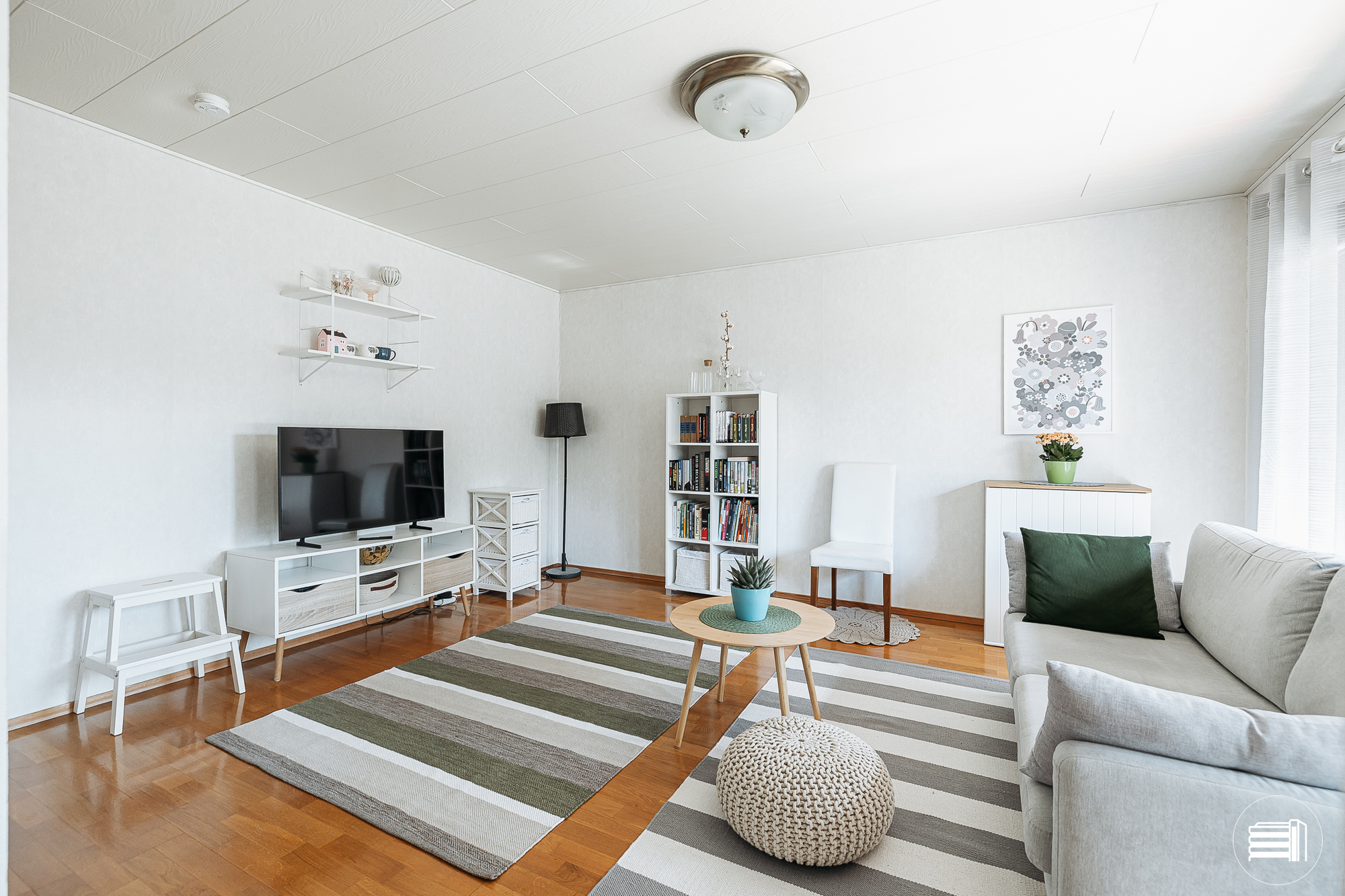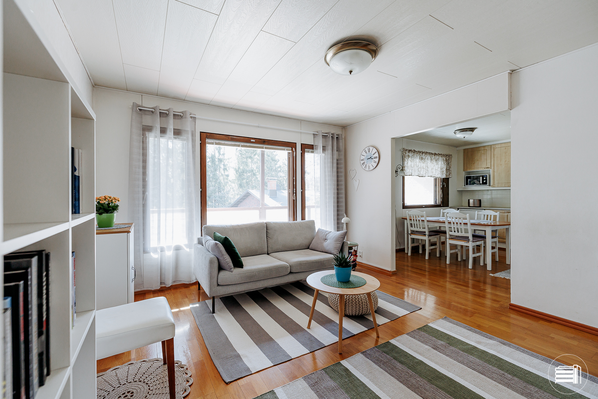 Tilava, valoisa olohuone